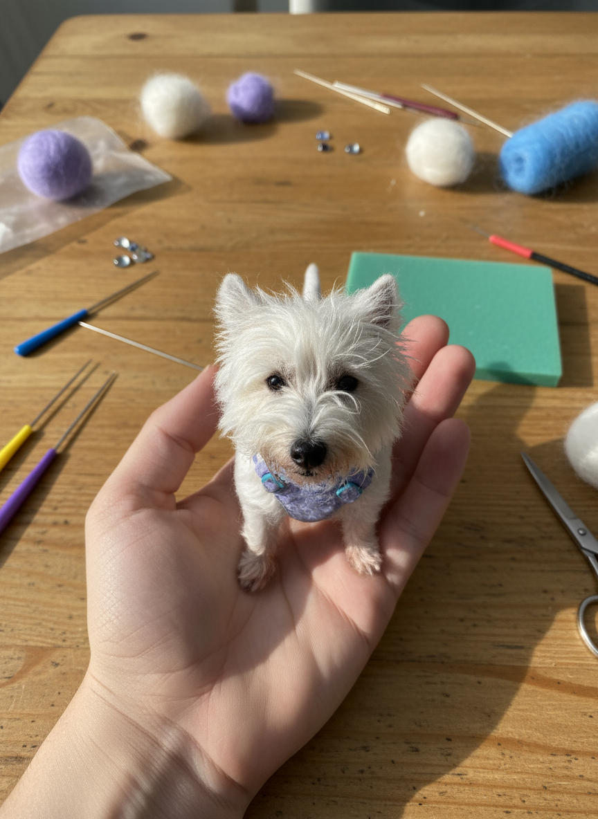 A full-body design captures not just your pet’s look, but the little moments that stay in your heart — a familiar pose, a simple moment, a memory gently brought to life in wool.